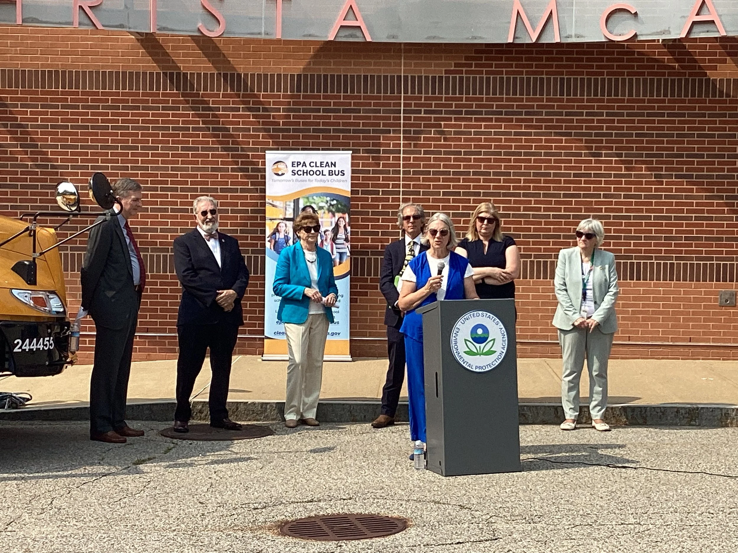 On Wednesday, August 14th at the Christa McAuliffe School in Concord, Senator Shaheen and EPA Regional Administrator Cash hosted a Back to School Clean School Bus event celebrating all of the funding New Hampshire has received thus far to transition school buses to electric. Dr. Pat Edwards, a Concord pediatrician and member of NH Healthy Climate’s Children’s Health Working Group, spoke about the children’s health benefits of e-buses including cleaner air, less noise pollution, decreased greenhouse gasses and improved efficiency for our buses.